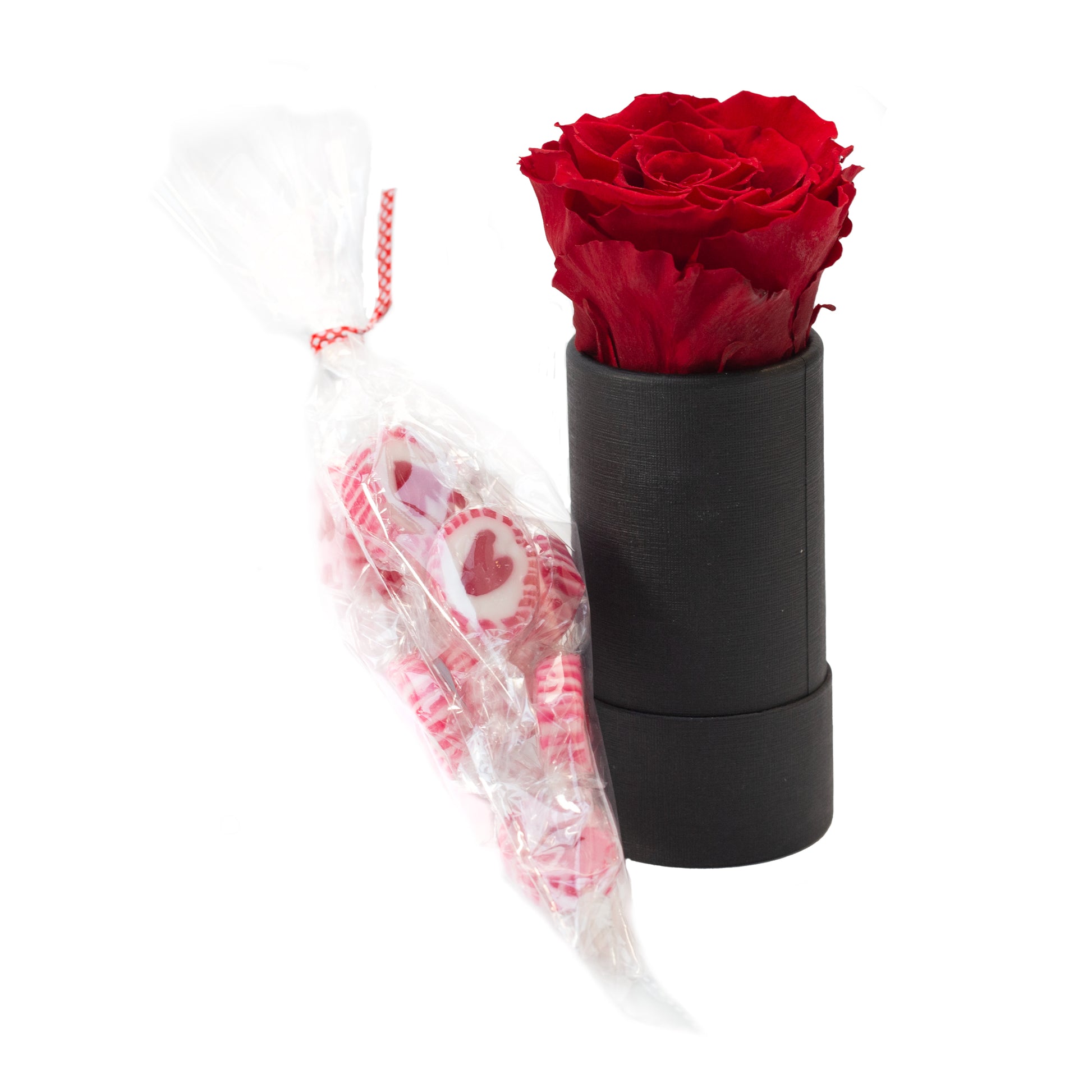 Erlebe ein besonderes Geschenk-Set, das lange in Erinnerung bleibt: Unsere echte, konservierte Infinity Rose kombiniert mit 10 Bonbons im herzhaften Design. Mit diesem Bundle schenkst Du nicht nur zeitlose Schönheit, sondern auch einen genussvollen Moment – perfekt für alle, die ihre Liebe mit einer geschmackvollen Geste unterstreichen möchten.
